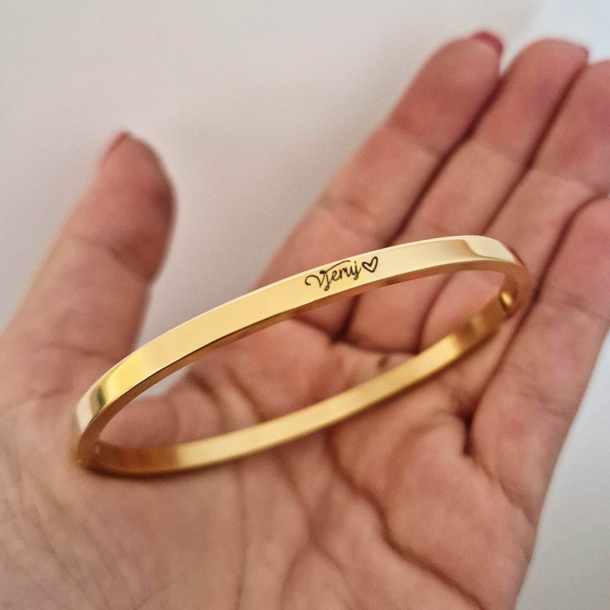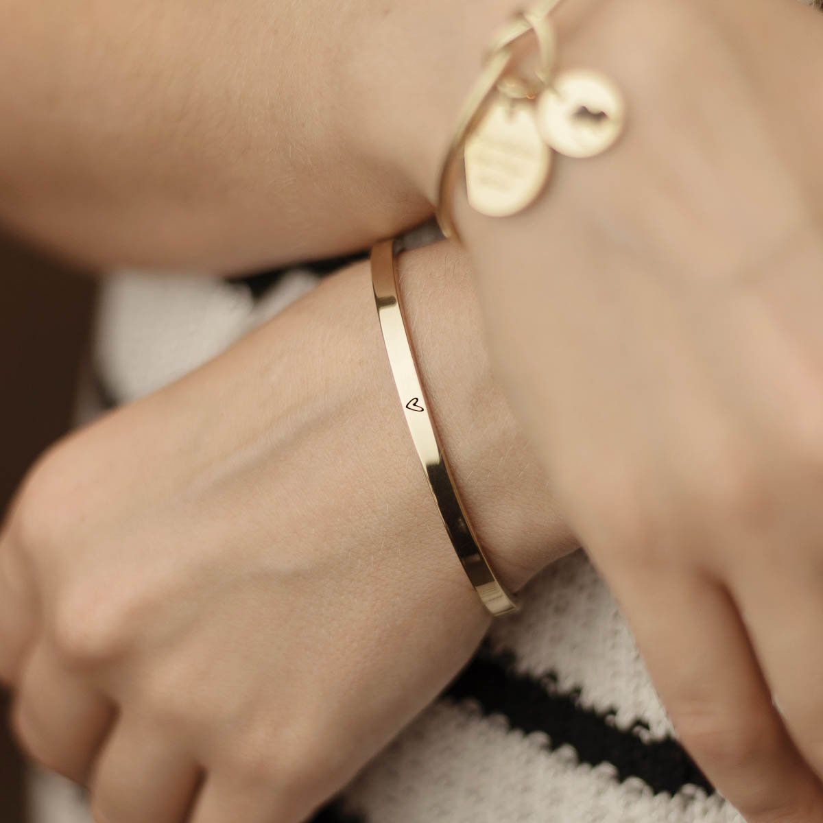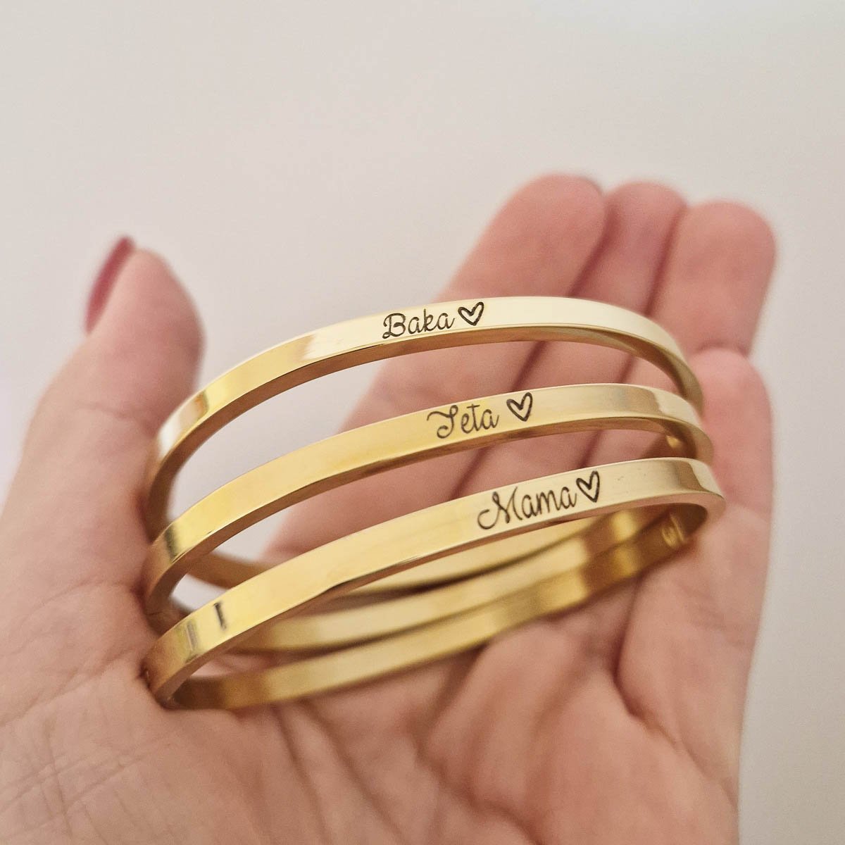 Narukvica s gravurom po želji predstavlja savršen spoj elegancije i osobnosti. Ovaj jedinstveni komad nakita može se prilagoditi kako bi odražavao posebne trenutke, imena ili poruke koje su vam važne. Dodavanjem elemenata po želji Vaš nakit postaje priča koja nosi vaše uspomene i osjećaje, stvarajući tako neponovljiv stil.
