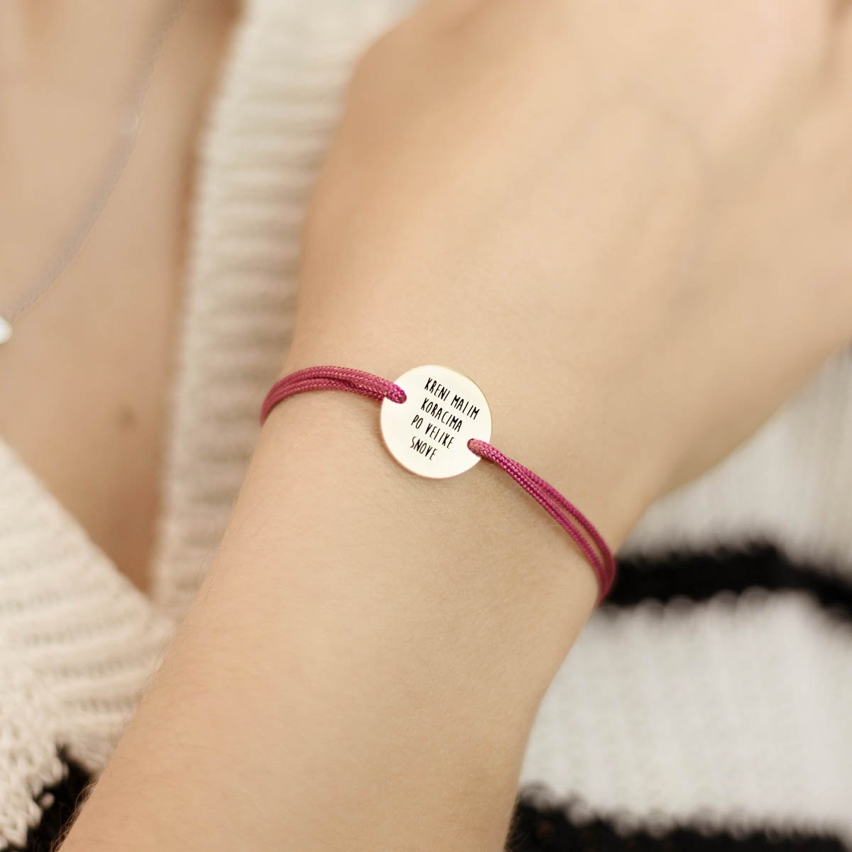 Narukvica s gravurom po želji predstavlja savršen spoj elegancije i osobnosti. Ovaj jedinstveni komad nakita može se prilagoditi kako bi odražavao posebne trenutke, imena ili poruke koje su vam važne. Dodavanjem elemenata po želji Vaš nakit postaje priča koja nosi vaše uspomene i osjećaje, stvarajući tako neponovljiv stil.