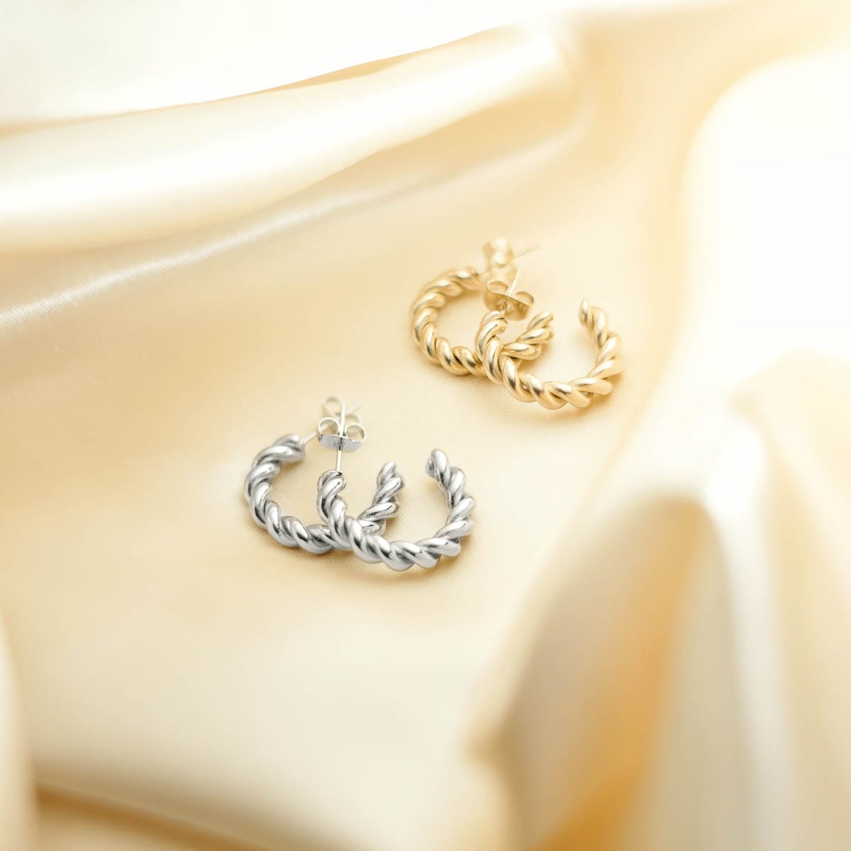 Elegantne naušnice izrađene od nehrđajućeg čelika ističu se modernim dizajnom i izdržljivošću. Zahvaljujući hipoalergenom materijalu, savršene su za svakodnevno nošenje, a sjajna završna obrada dodaje dozu sofisticiranosti svakom outfitu.