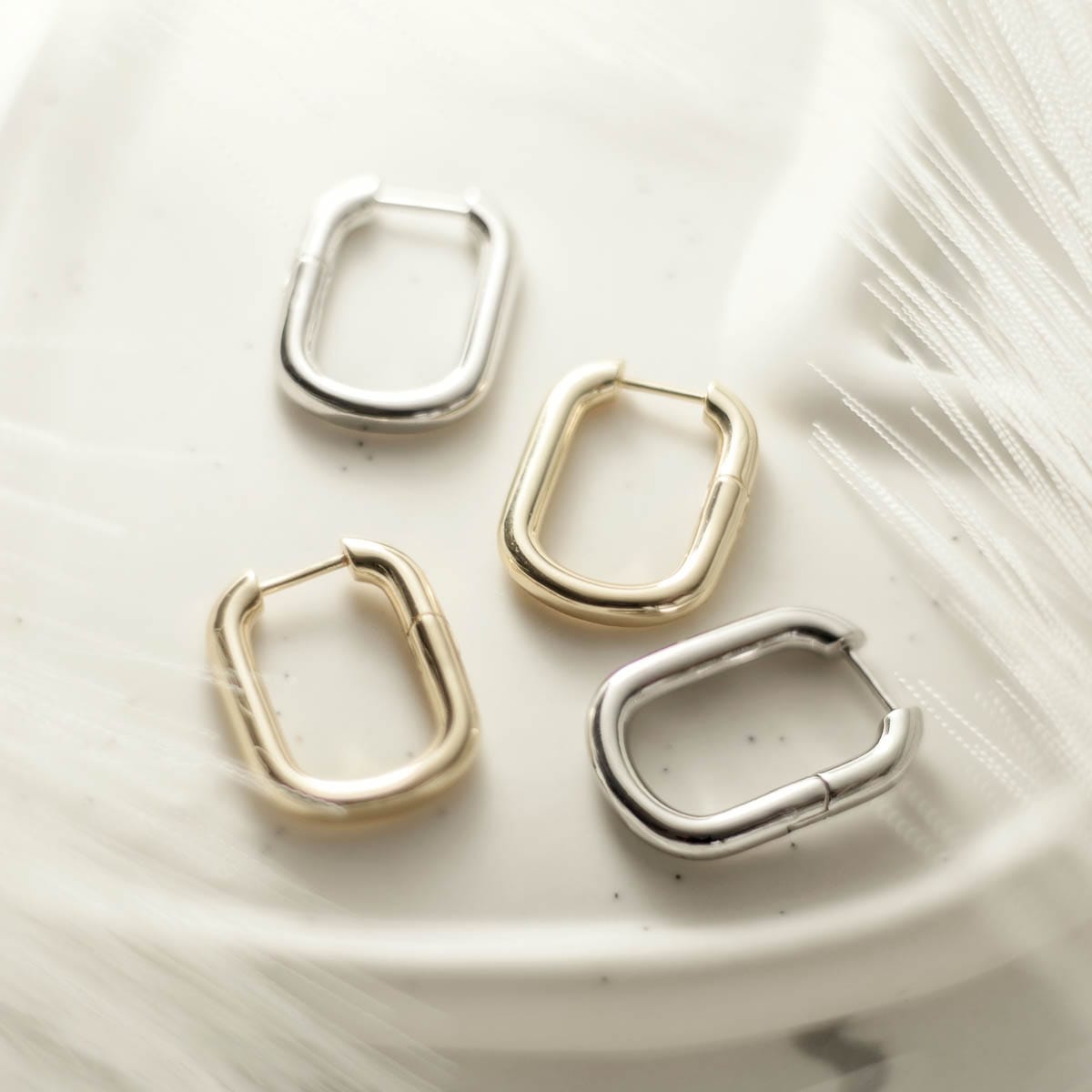 Elegantne naušnice izrađene od nehrđajućeg čelika ističu se modernim dizajnom i izdržljivošću. Zahvaljujući hipoalergenom materijalu, savršene su za svakodnevno nošenje, a sjajna završna obrada dodaje dozu sofisticiranosti svakom outfitu.