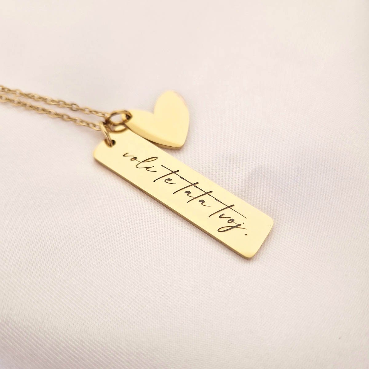 Ogrlica s gravurom po želji predstavlja savršen spoj elegancije i osobnosti. Ovaj jedinstveni komad nakita može se prilagoditi kako bi odražavao posebne trenutke, imena ili poruke koje su vam važne. Dodavanjem elemenata po želji svaka ogrlica postaje priča koja nosi vaše uspomene i osjećaje, stvarajući tako neponovljiv stil.