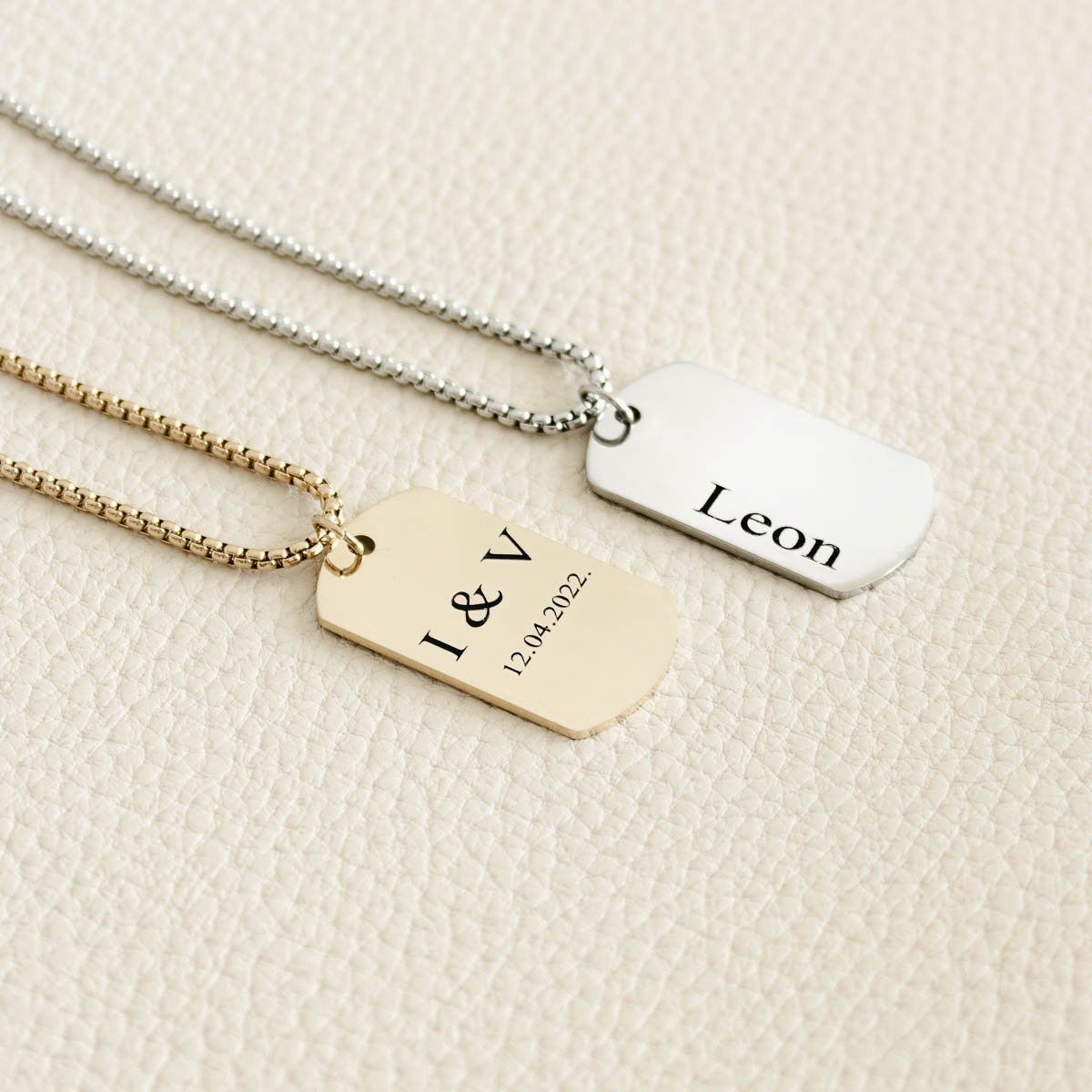 Elegantna muška ogrlica od nehrđajućeg čelika s personaliziranom gravurom po želji. Izdržljiv i moderan dodatak koji ističe vaš stil, savršen za svakodnevno nošenje ili posebne prigode. Idealna kombinacija sofisticiranosti i osobne note.