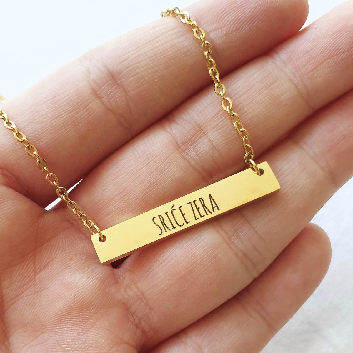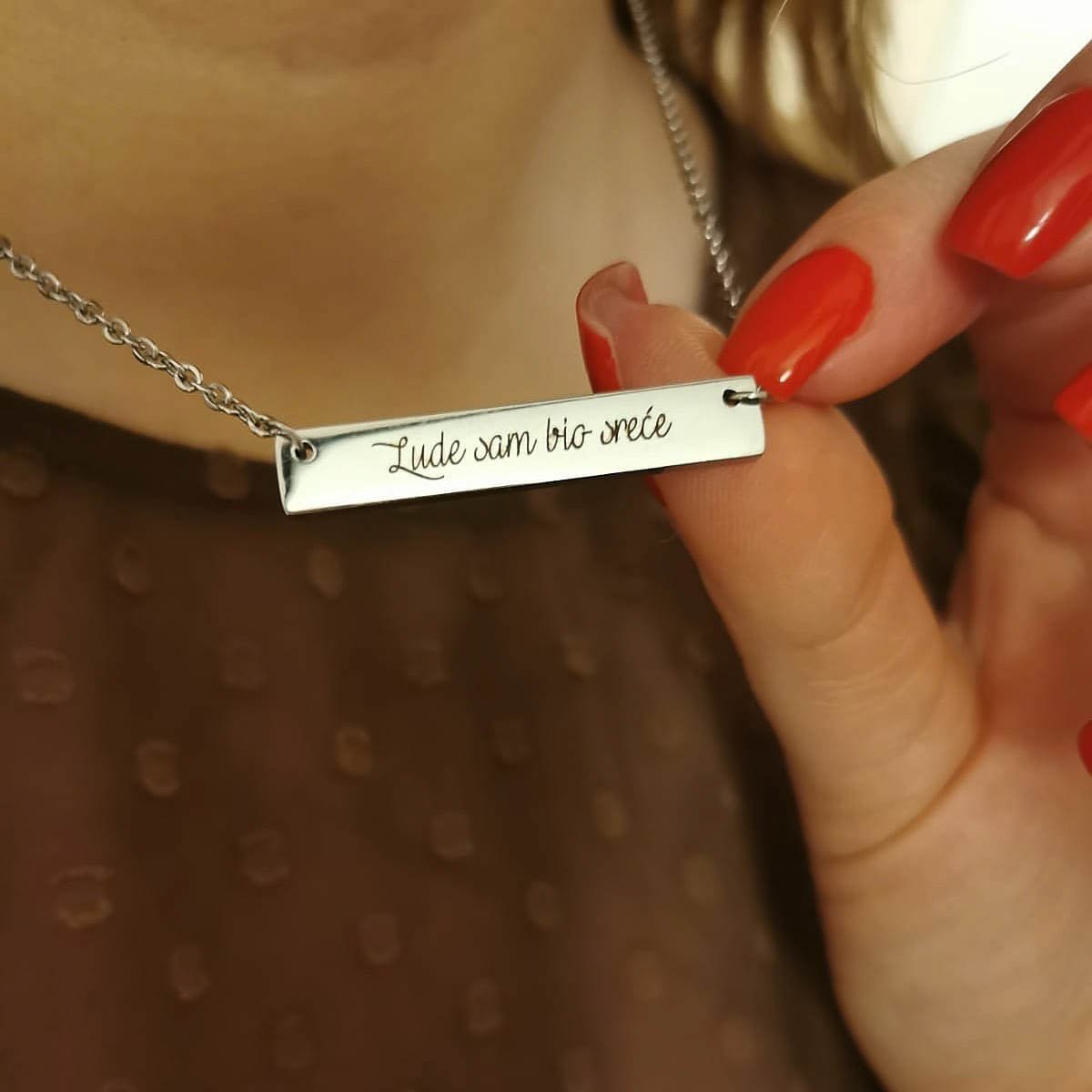 Ogrlica s gravurom po želji predstavlja savršen spoj elegancije i osobnosti. Ovaj jedinstveni komad nakita može se prilagoditi kako bi odražavao posebne trenutke, imena ili poruke koje su vam važne. Dodavanjem elemenata po želji svaka ogrlica postaje priča koja nosi vaše uspomene i osjećaje, stvarajući tako neponovljiv stil.