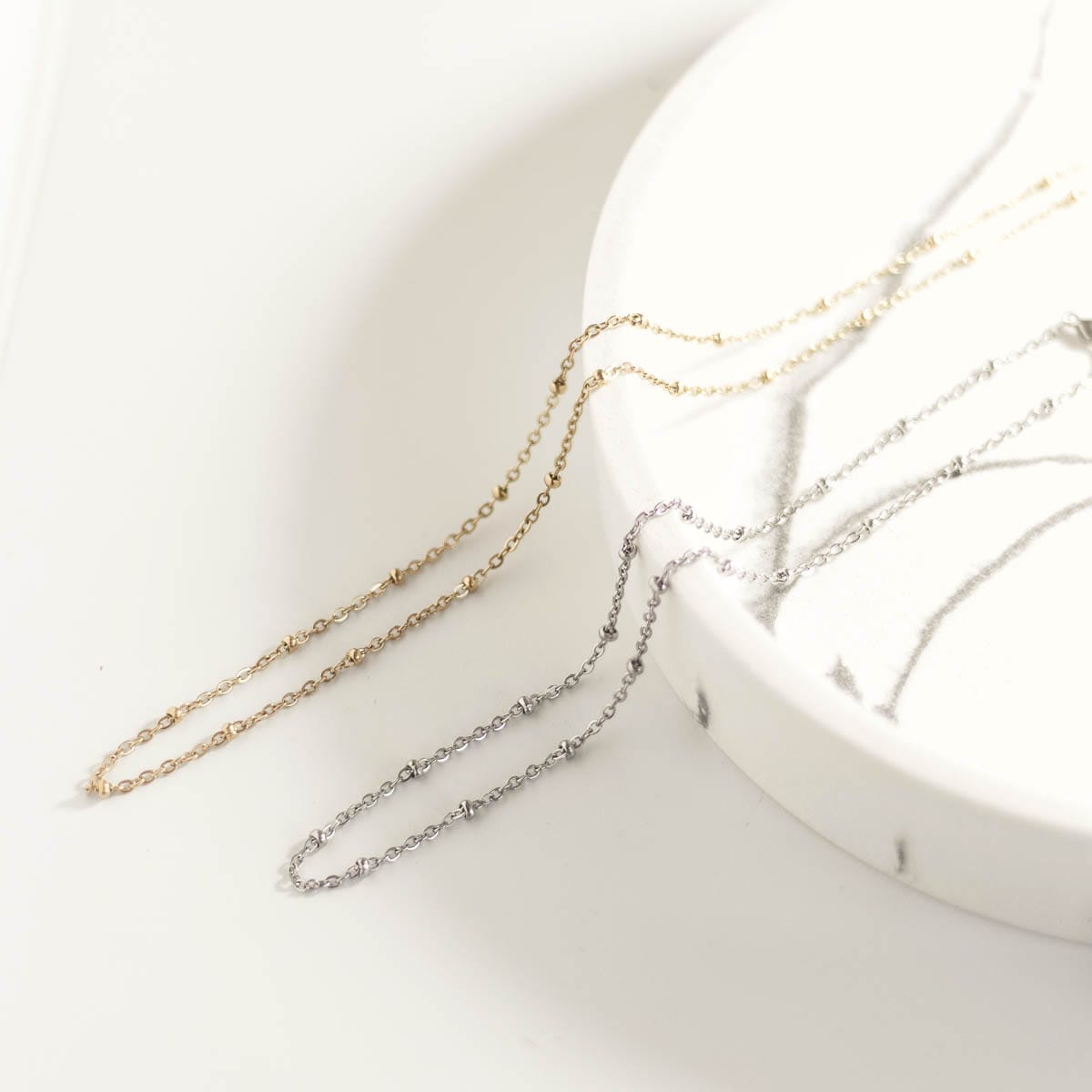 Ova elegantna ogrlica od nehrđajućeg čelika savršena je kombinacija modernog dizajna i trajne izdržljivosti. Sa svojim minimalističkim izgledom i sjajnom površinom, idealna je za svakodnevno nošenje ili posebne prigode. Ogrlica se lako prilagođava i savršeno se uklapa uz različite stilove, od casual do formalnih. Njena otpornost na koroziju osigurava da će dugo zadržati svoj izgled, čineći je savršenim dodatkom za svaku kolekciju nakita.