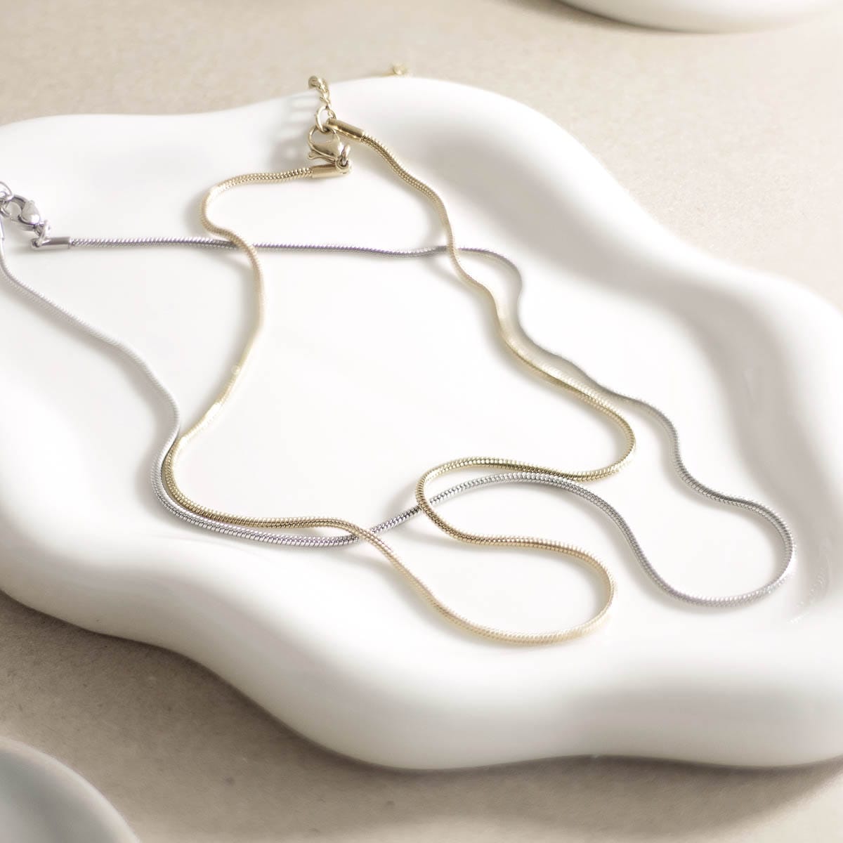 Ova elegantna ogrlica od nehrđajućeg čelika savršena je kombinacija modernog dizajna i trajne izdržljivosti. Sa svojim minimalističkim izgledom i sjajnom površinom, idealna je za svakodnevno nošenje ili posebne prigode. Ogrlica se lako prilagođava i savršeno se uklapa uz različite stilove, od casual do formalnih. Njena otpornost na koroziju osigurava da će dugo zadržati svoj izgled, čineći je savršenim dodatkom za svaku kolekciju nakita.