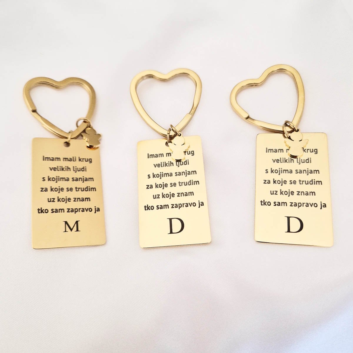 Privjesci od nehrđajućeg čelika, elegantno oblikovani, predstavljaju savršen spoj trajnosti i osobnog stila. Svaki privjesak može biti personaliziran gravurom po želji, dodajući jedinstvenu poruku ili simbol koji odražava vašu priču. Uz to, mogućnost odabira dodatnih elemenata čini svaki komad posebnim i prilagođenim vašem ukusu, osiguravajući da postane ne samo modni dodatak, već i nezaboravna uspomena.